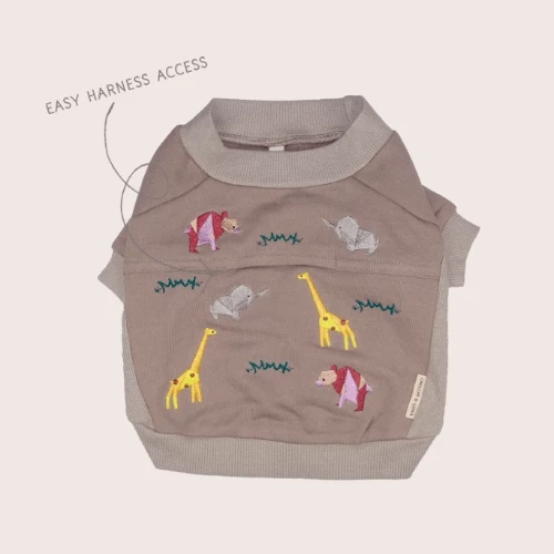 For the pups who are wild at heart – the Origami Jungle Sweater by Gnocchi and Goma.