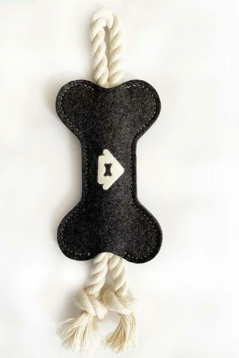 Treat your pup to a handmadeย wool toy from House Dogge!ย This toy is intended to be entertaining for pets who love to carry their toys around and/or enjoy a friendly game of toss & tug. No toy is indestructible. Know your pet.ย Be a good doggy friend by always supervising pets while they are playing with toys.ย House Doggeย uses non-toxic, eco friendly materials but as always, if any toy becomes critically damaged, broken, or torn apart, please dispose of toy responsibly.