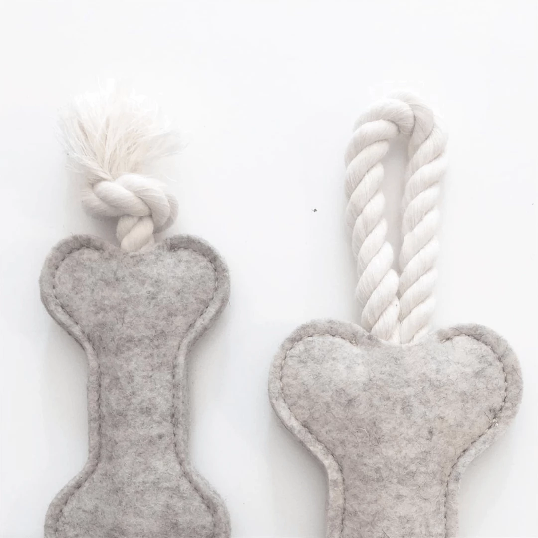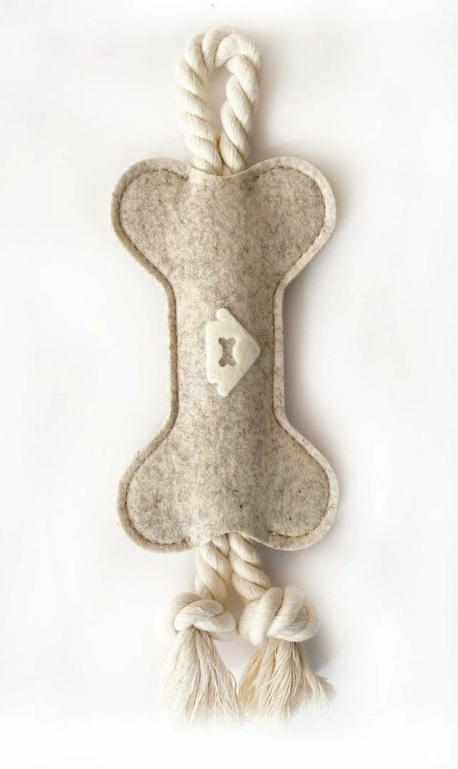 Treat your pup to a handmadeย wool toy from House Dogge!ย This toy is intended to be entertaining for pets who love to carry their toys around and/or enjoy a friendly game of toss & tug. No toy is indestructible. Know your pet.ย Be a good doggy friend by always supervising pets while they are playing with toys.ย House Doggeย uses non-toxic, eco friendly materials but as always, if any toy becomes critically damaged, broken, or torn apart, please dispose of toy responsibly.