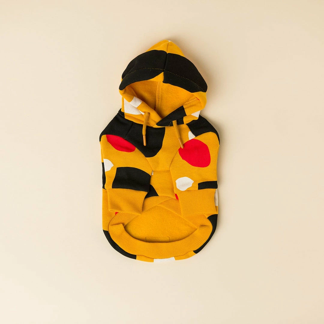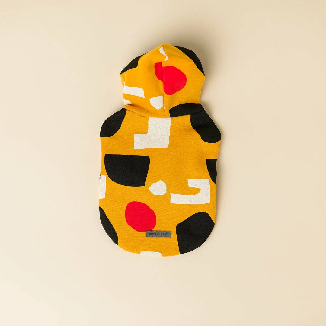 Modern masterpiece. Arty abstract shapes abound on the COΒ Mustard Hoodie by Huts and Bay.Β