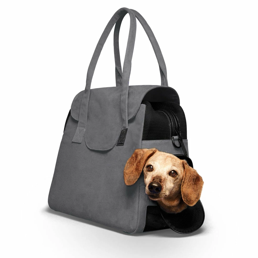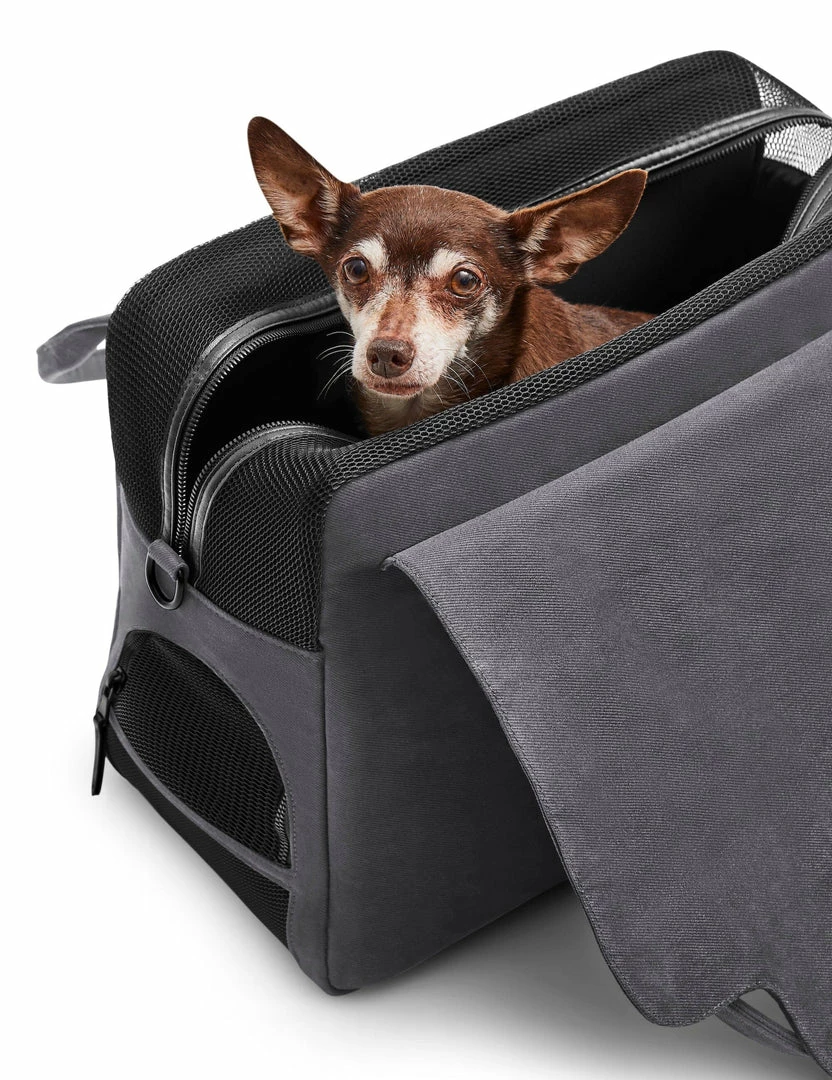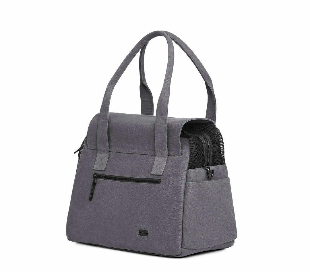 For extra discretion when out and about, a canvas flap rests on top of the mesh using a magnetic closure to conceal your doggo without restricting their airflow.ย