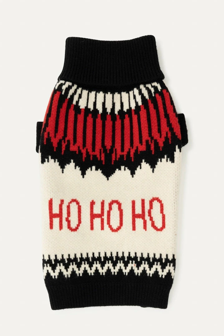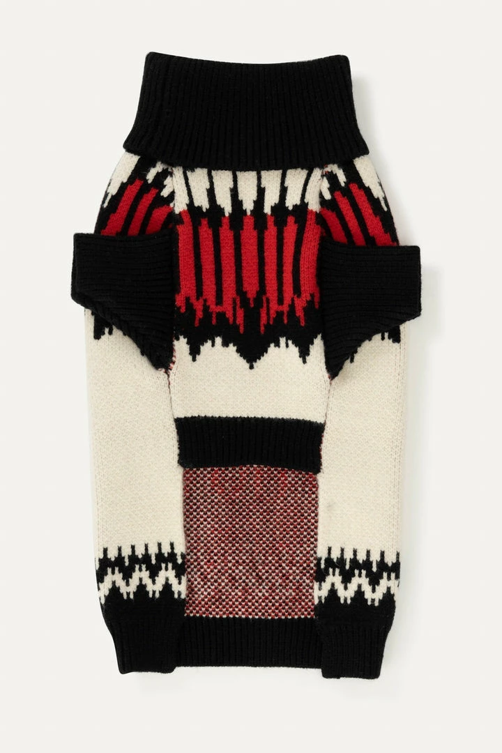 Max Bone’s signature holiday jumper is guaranteed to bring holiday cheer to your family (or cheeky fun all year round). Made from an ultra-soft yarn and inspired by classic patterns of Fair Isle sweaters, this style features a turtleneck and sleeves for the ultimate in coziness for your pup.