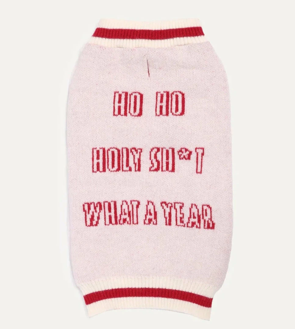 Max Bone is sending 2022 off with a bang with the Ho Ho Holy Sh*t what a year sweater. With lightweight knit, this style is sure to bring a smile to people’s faces.