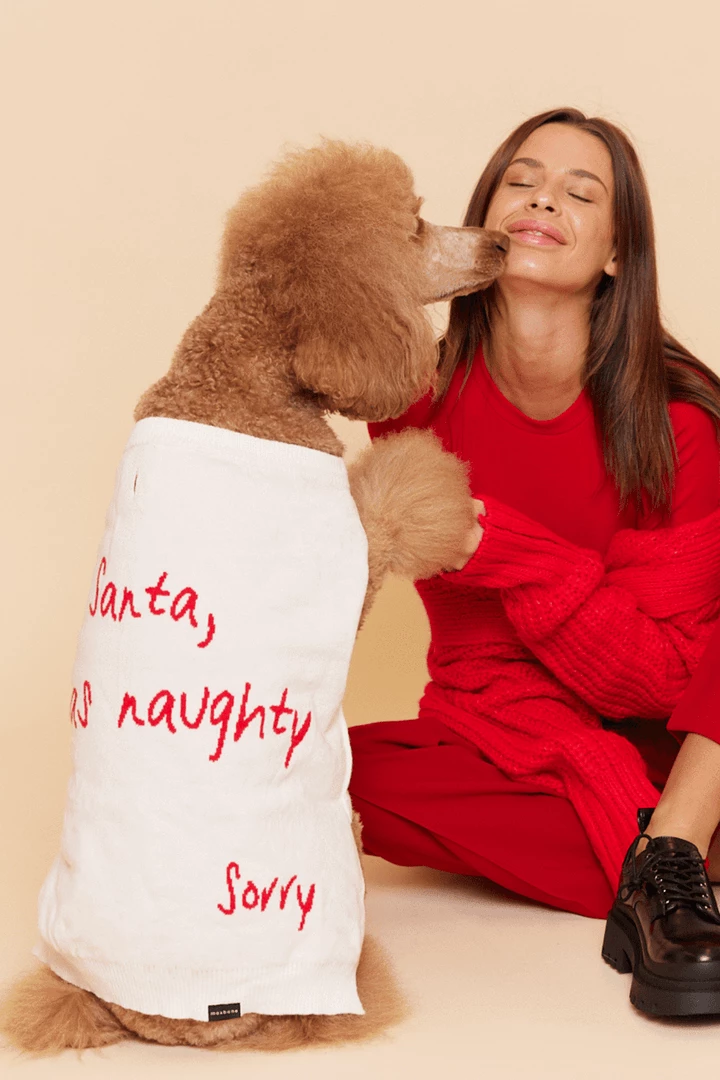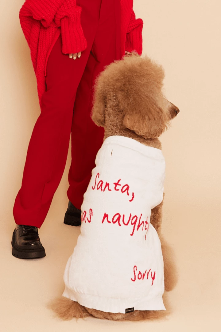 Did your dog pee on someone else’s rug?Β Eat your shoes? Poop on the floor? Sneak a snack from the table? Weβve got the right holiday sweater for you. Made from lightweight super stretch knit, the Sorry Santa jumper features a sleeveless design for freedom of movement.Β