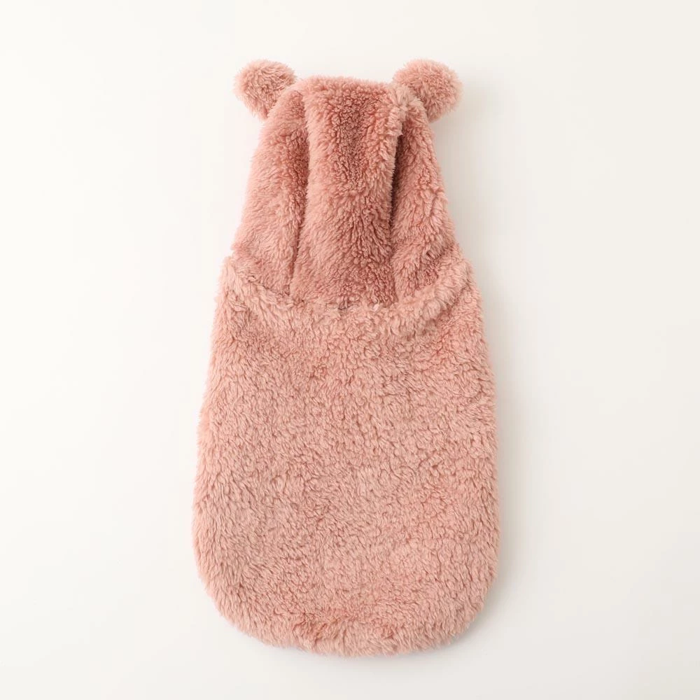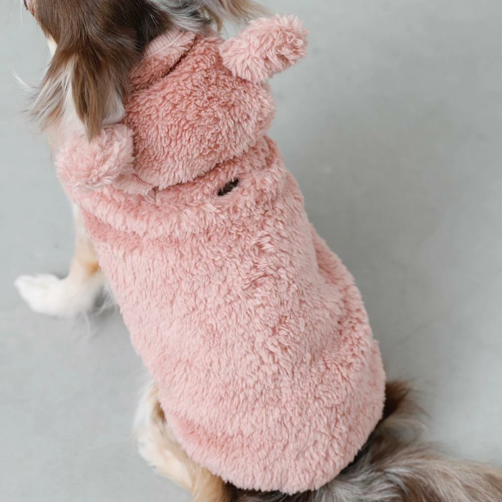 - Pink fleece with coordinating ribbing around hood, arms and hem