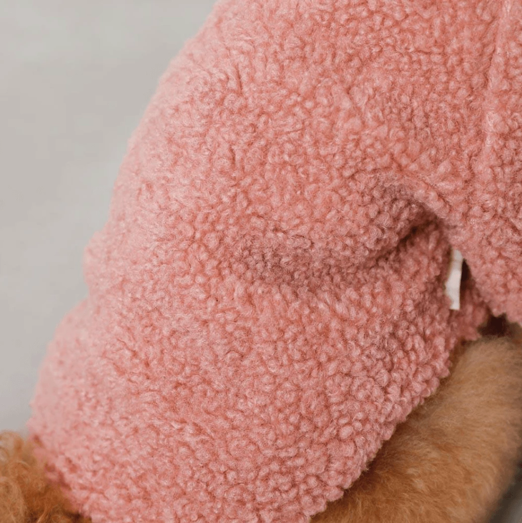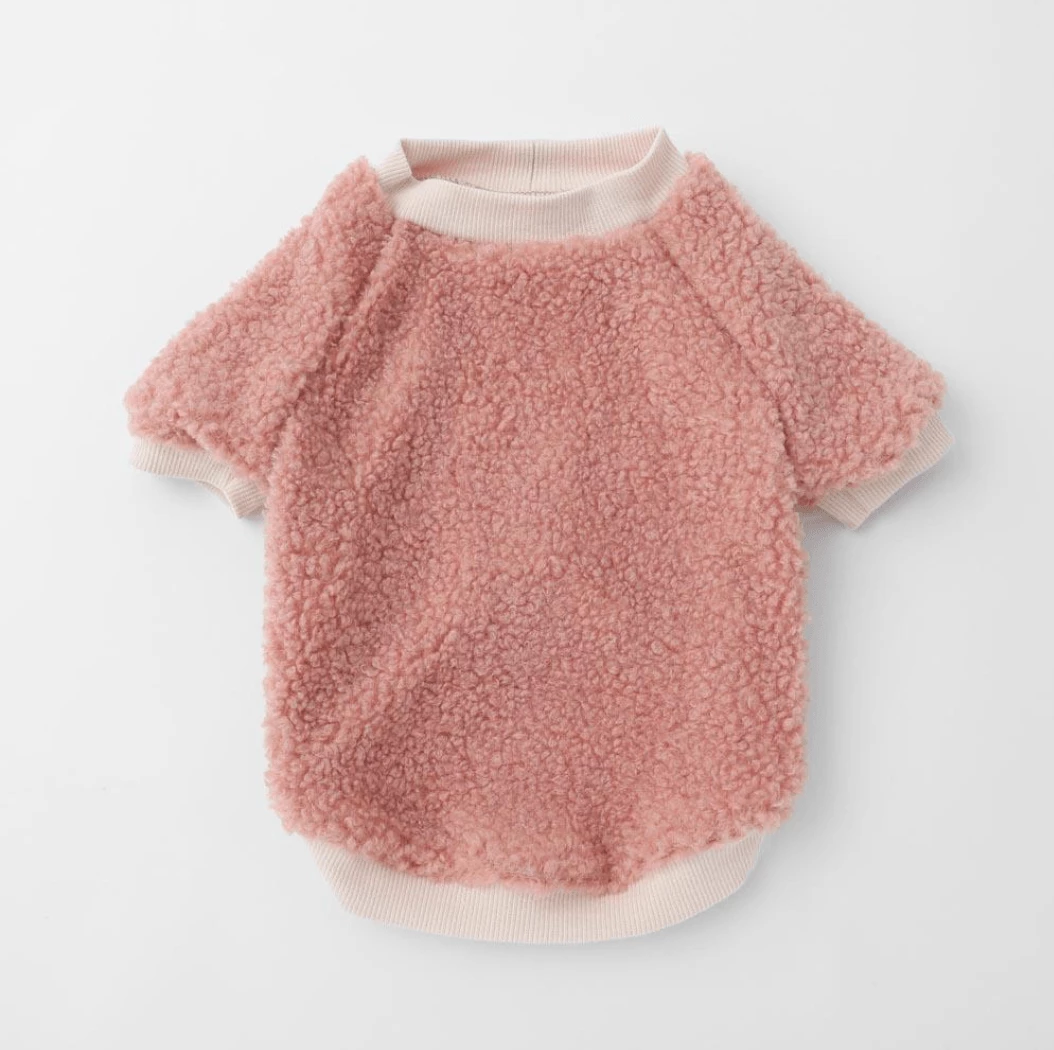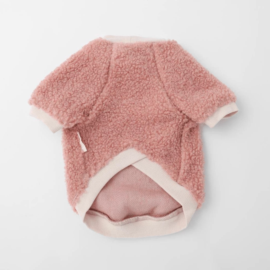 - Pink fleece with contrasting ivory trim