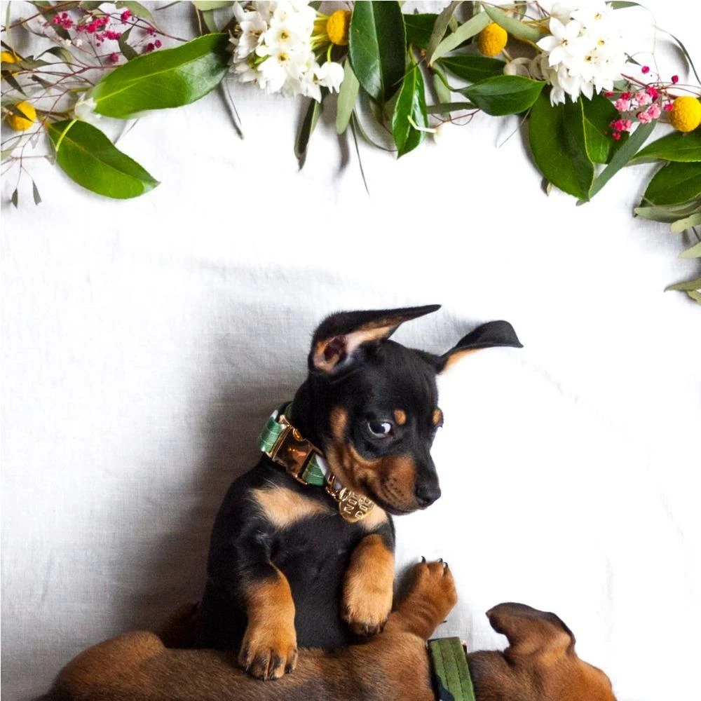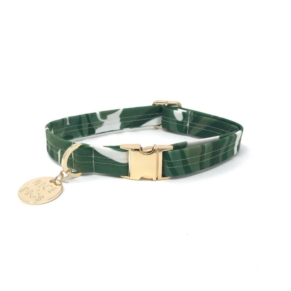 These bad boys are lucky enough to inherit the same traits as their beds, they’re water repellant, stain repellant & washable! Finished with a gold side release buckle and their iconic Nice Digs dog charm. Due to the nature of this product being made from remnant fabric, the print design and colour may vary so each item is completely unique.