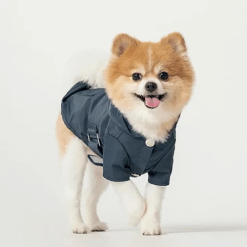 Keep your pupper nice and dry with Pehom’s Raincoat in blue.