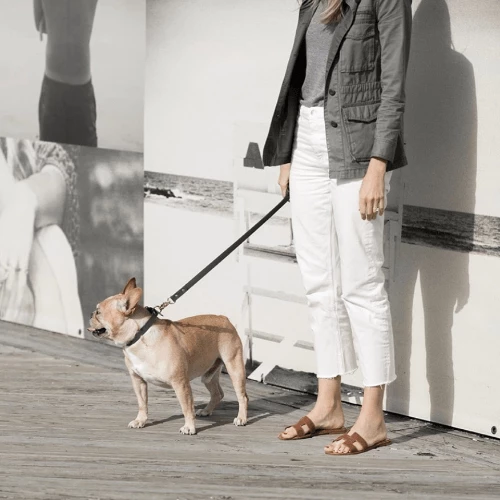 Pipolli’s chic Leather Leash is made of high quality and smooth Italian leather and solid brass hardware. Made in the USA. Pairs nicely with the Pipolli Bow Collar.