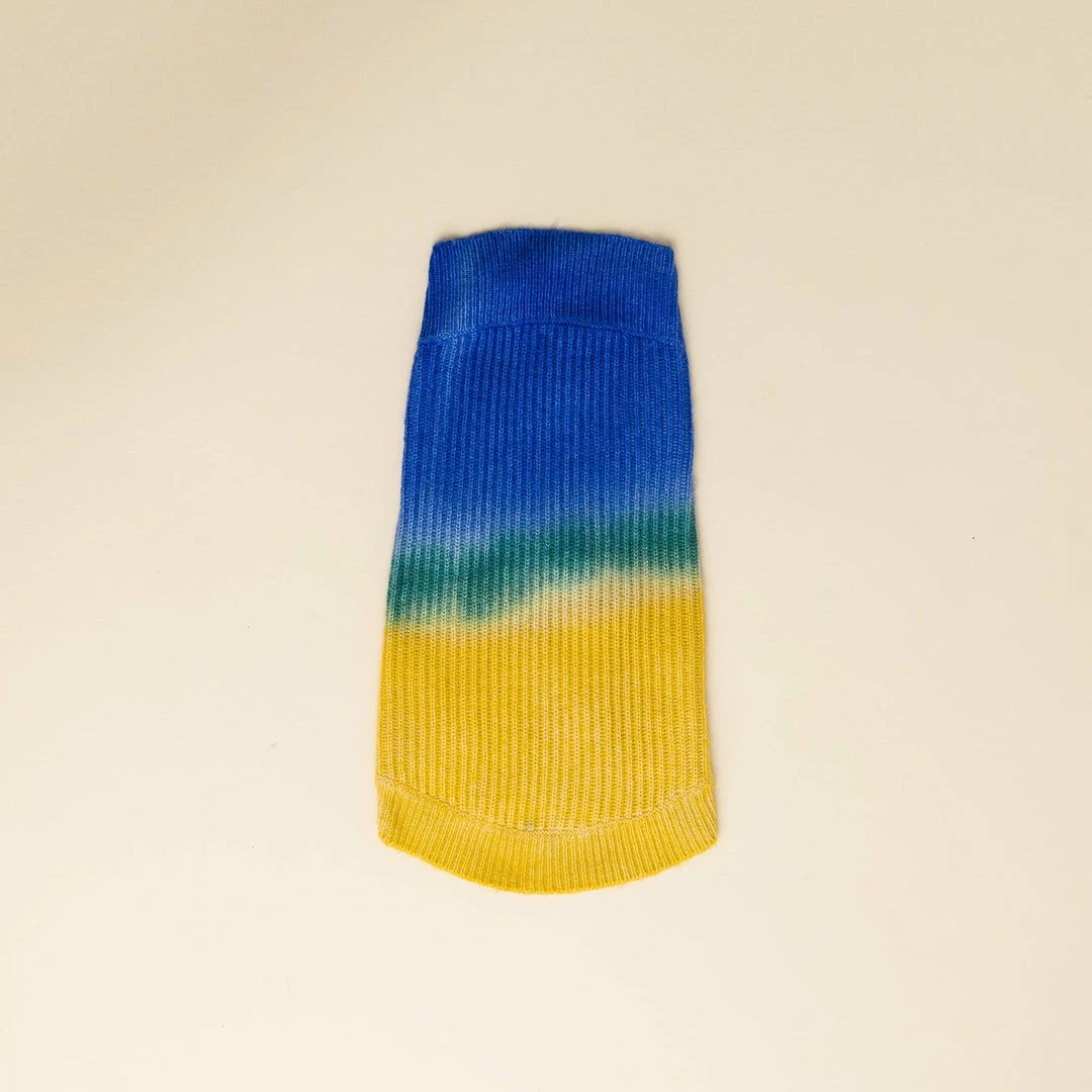 After some California dreaming Ruby Rufus created a new lightweight cashmere blend and tie dyed it in three vibrant color ways. A dog sized spin on the most loved look of the season.