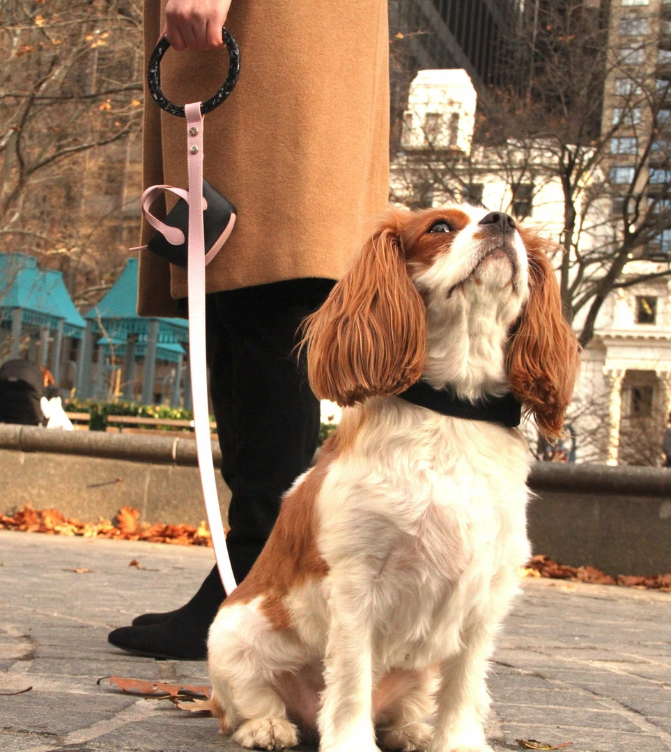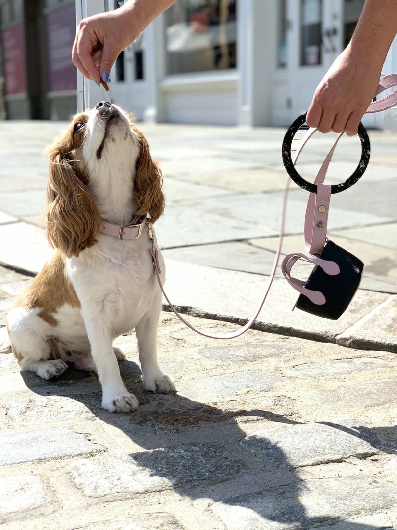 The Susan leash connects you and your best furry friend in style – without compromising on comfort or safety. Made with a strong acrylic handle that emulates modern fashion accessories and their signature water and scratch-resistant leather. With a hidden loop in the back to attach the Clean Up Purse – it’s the perfect mix of convenient and chic. Your walks have never been so fashionable.