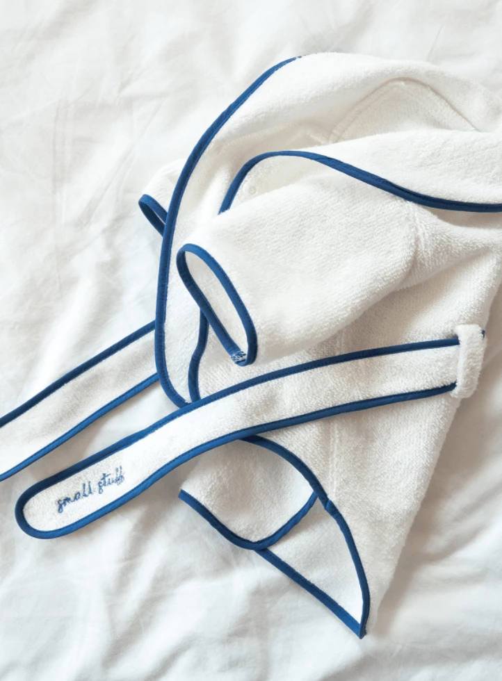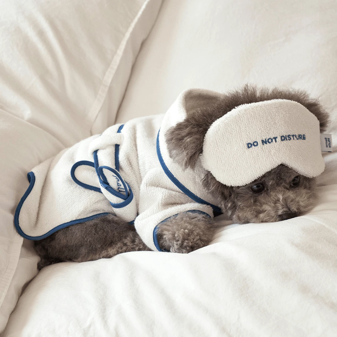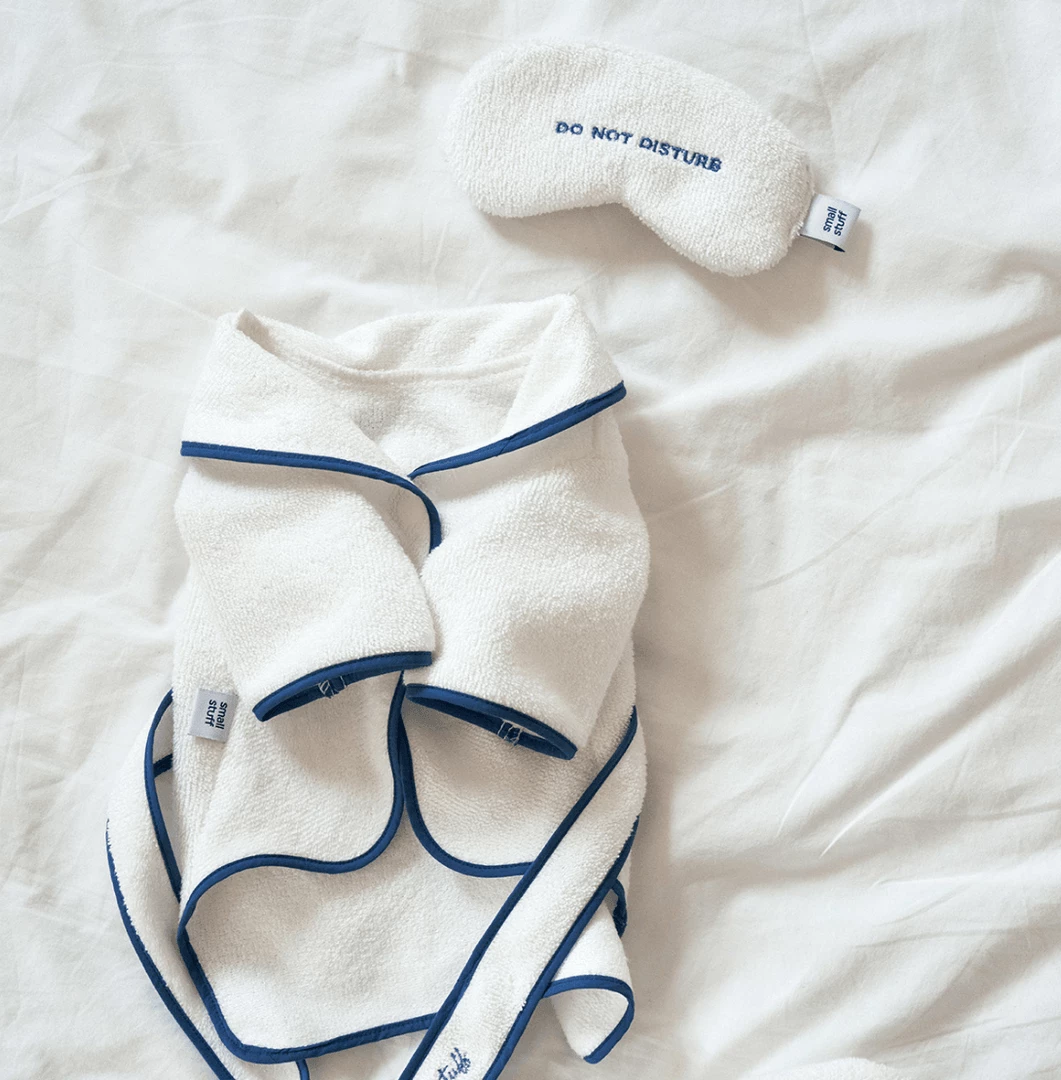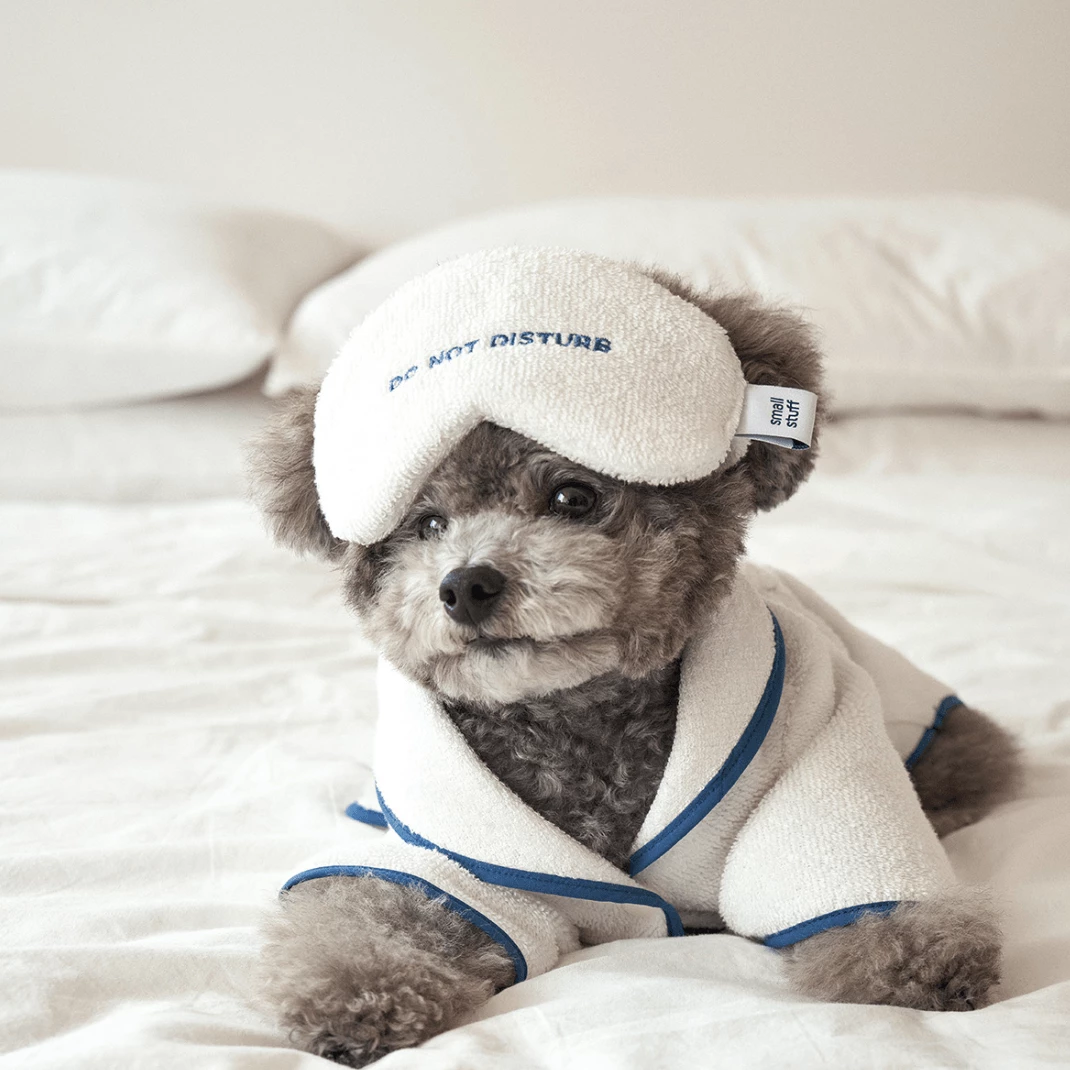 Serious self care from Small Stuff! Your pup can wear this robe after bath time, pool time, rainy day walkies or as weekend loungewear.ย Pair with the matchingย Sleep Mask Toy to complete this loungewear look.ย