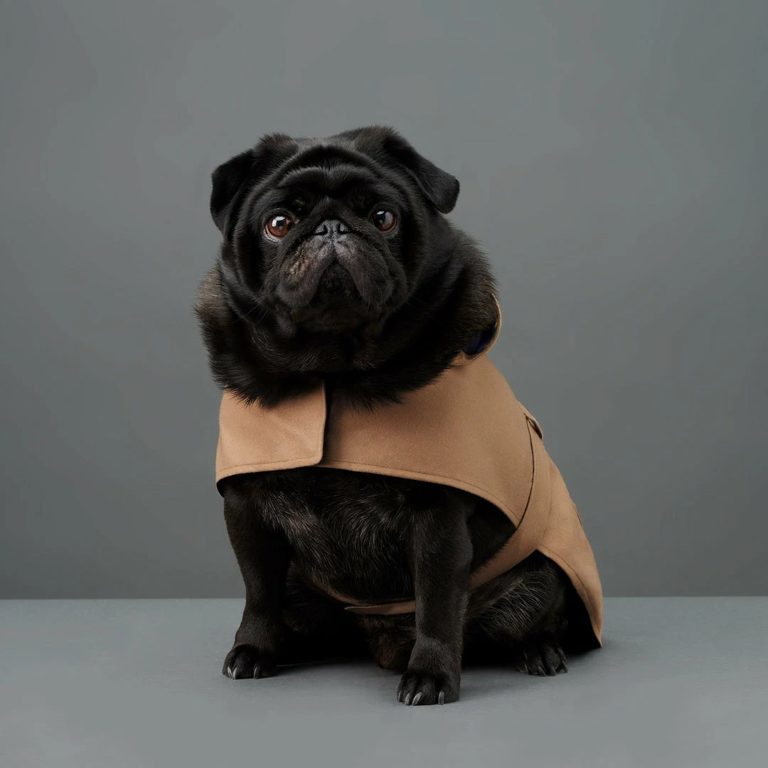 “Keep me dry & fluffy enough to cuddle during rainy day walks with this pure wool raincoat. It’s got an easy-to-fasten belt, hood, real horn buttons and pockets so I can carry my own poop bags (or treats)!” – Bourbon, Shih-Tzu