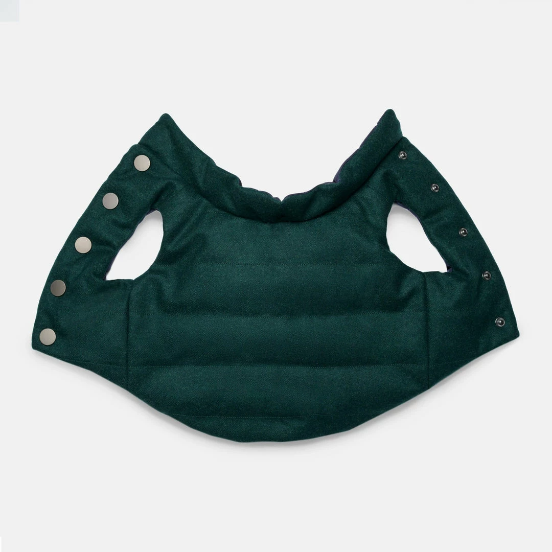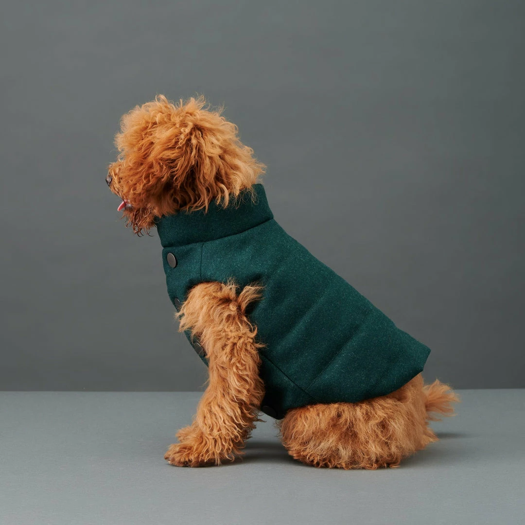 “I love this reversible puffer! The brass-plated snap buttons make it a cinch to put on, theΒ waterproof wool blend keeps dry & cozy, and the fact that itΒ brings out my beautiful golden fur doesn’t hurt either.” β Bernard, Toy Poodle