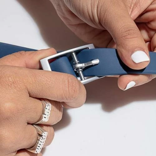 - Flex poly coated nylon strap, zinc alloy buckle, coated carbon steel d-ring