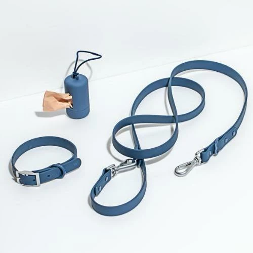 Easy to use. Simple to clean. Made with a super strong flex-poly strap, the all-weather collar is comfortable and functional.ย Pull the look togetherย withย theย matching leashย andย poop bag holder!ย ย ย ย ย ย ย ย